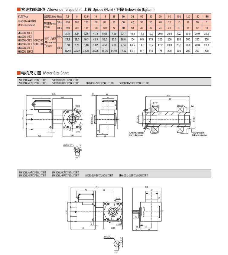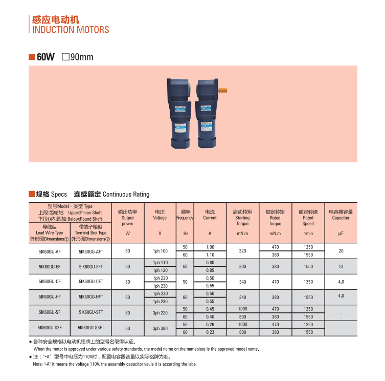 電機特性:感應電機,可逆電機,調速電機 ,剎車電機可選。