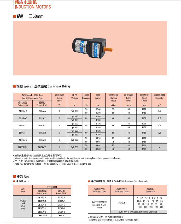 電機特性:感應電機,可逆電機,調速電機 ,剎車電機可選。